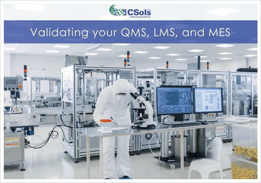 NEWARK, DE, USA, October 12, 2023 /EINPresswire.com/ — CSols Inc., the premier laboratory informatics solutions provider in North America, announces the addition of new validation services for quality management system (QMS), learning management system (LMS), and manufacturing execution system (MES) platforms. Organizations now can leverage CSols’s validation expertise across the entire Quality system.