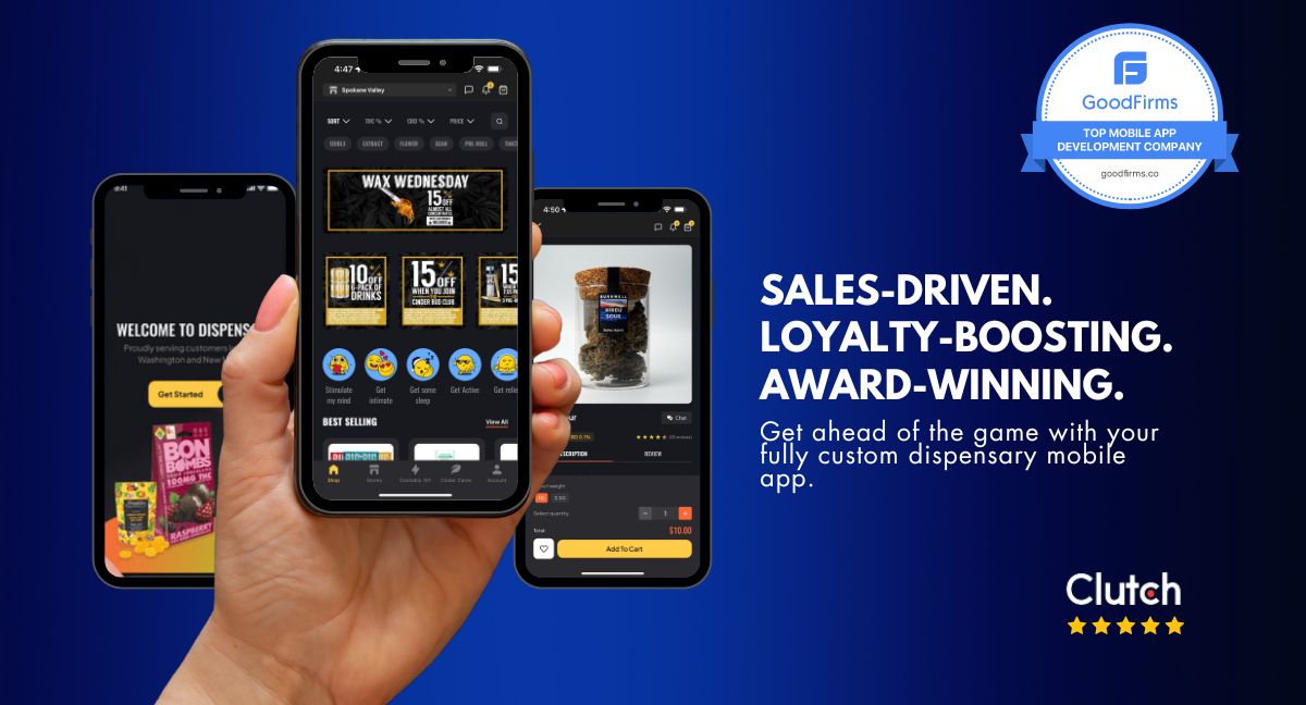 DispensaryMate offers an addictive user experience that combines cannabis shopping, rewards, referrals, and more all in one branded platform. Every custom mobile app includes a fully branded interface, custom UX that aligns with their business strategy, blog synchronization, strategic product categorization & filters, smart selling tools to increase order totals, analytics, app marketing support, compliance and 24/7 app maintenance that comes with free updates. All these and more for less.
