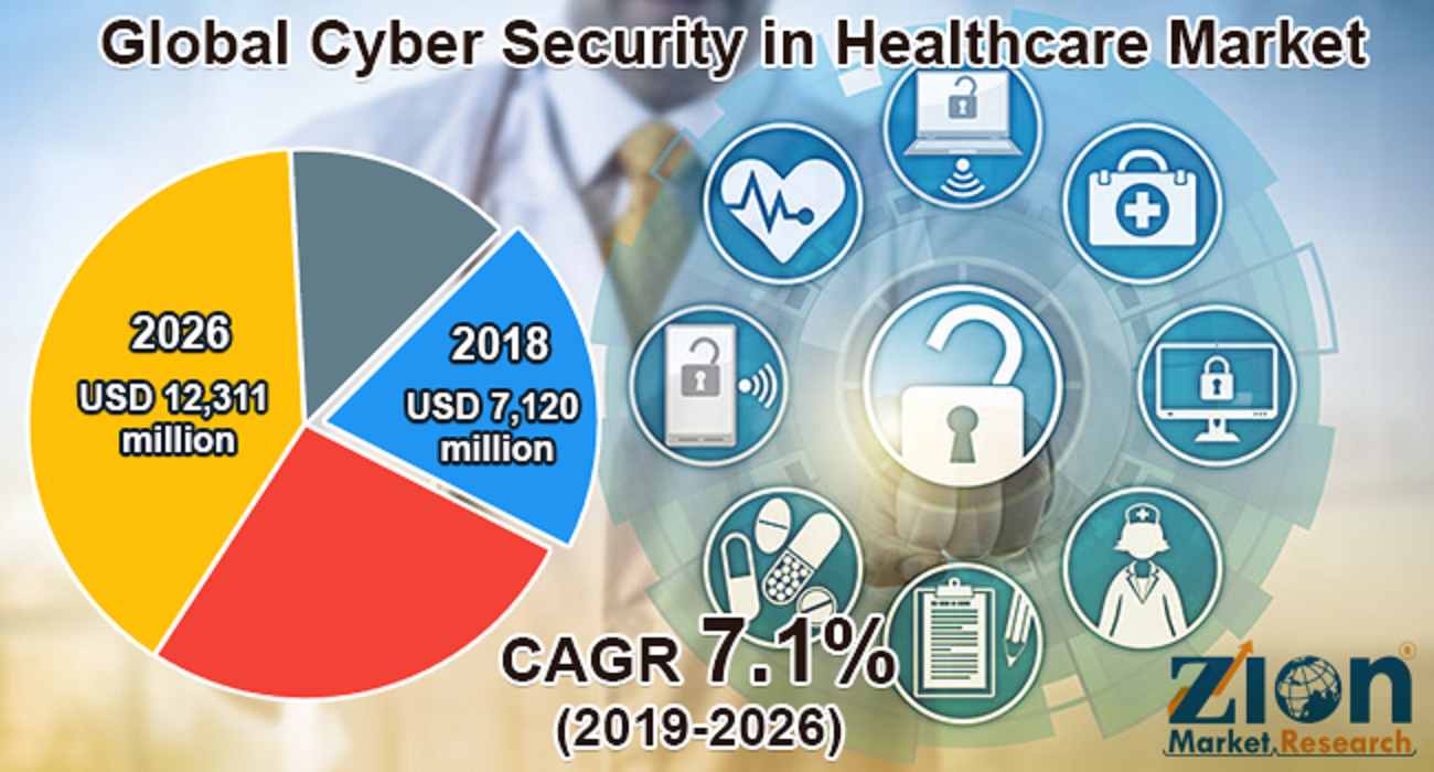 SUITE N202, FLORIDA, UNITED STATES, September 13, 2022 /EINPresswire.com/ — Zion Market Research has published a new report titled “Cyber Security in Healthcare Market by Deployment Type (On-Premises and Cloud-Based), by Security Type (Application Security, Cloud Security, Content Security, Endpoint Security, Network Security, and Wireless Security), and by End-User (Pharmaceutical & Chemical Manufactures, Medical Device Companies, Health Insurance Companies, Hospitals & Clinics, and Others): Global Industry Perspective, Comprehensive Analysis, and Forecast, 2018–2026”. According to the report, the global cyber security in the healthcare market was approximately USD 7,120 million in 2018 and is expected to generate around USD 12,311 million by 2026, at a CAGR of around 7.1% between 2019 and 2026.