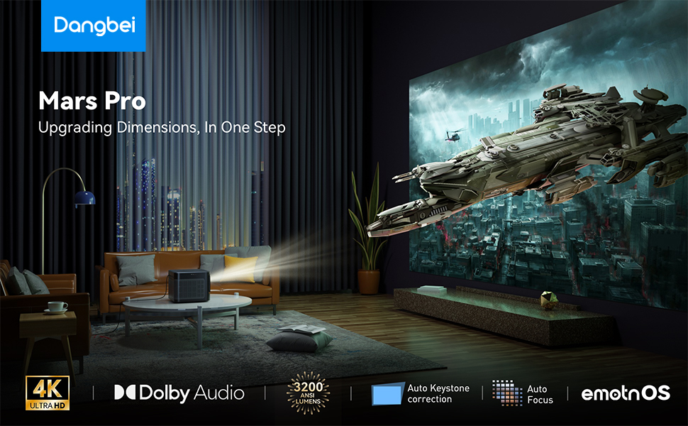 With ALPD laser as the light source, Dangbei Mars Pro features 4K resolution and 3200 ANSI lumens, projecting bright and clear images even under ambient lights. It also supports HDR 10 and HLG, bringing a cinematic viewing experience.