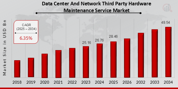 LOS ANGELES, CA, UNITED STATES, April 23, 2025 /EINPresswire.com/ — According to a new report published by Market Research Future (MRFR), The Data Center And Network Third Party Hardware Maintenance Service Market is projected to grow from USD 28.46 Billion in 2025 to USD 49.54 Billion by 2034, exhibiting a compound annual growth rate of 6.35% during the forecast period 2025 – 2034.