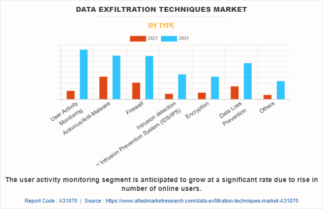 WILMINGTON, DE, UNITED STATES, January 19, 2024 /EINPresswire.com/ — According to a new report published by Allied Market Research, titled, “Data Exfiltration Techniques Market By Component (Solution, Service), By Enterprise Size (Large Enterprise, Small And Medium Enterprise), By Type (User Activity Monitoring, Antivirus/Anti-Malware, Firewall, Intrusion Detection System/ Intrusion Prevention System (IDS/IPS), Encryption, Data Loss Prevention, Others), By Industry Vertical (BFSI, IT And Telecom, Retail And E-Commerce, Healthcare, Manufacturing, Government And Defense, Energy And Utility, Others): Global Opportunity Analysis And Industry Forecast, 2022-2031″.