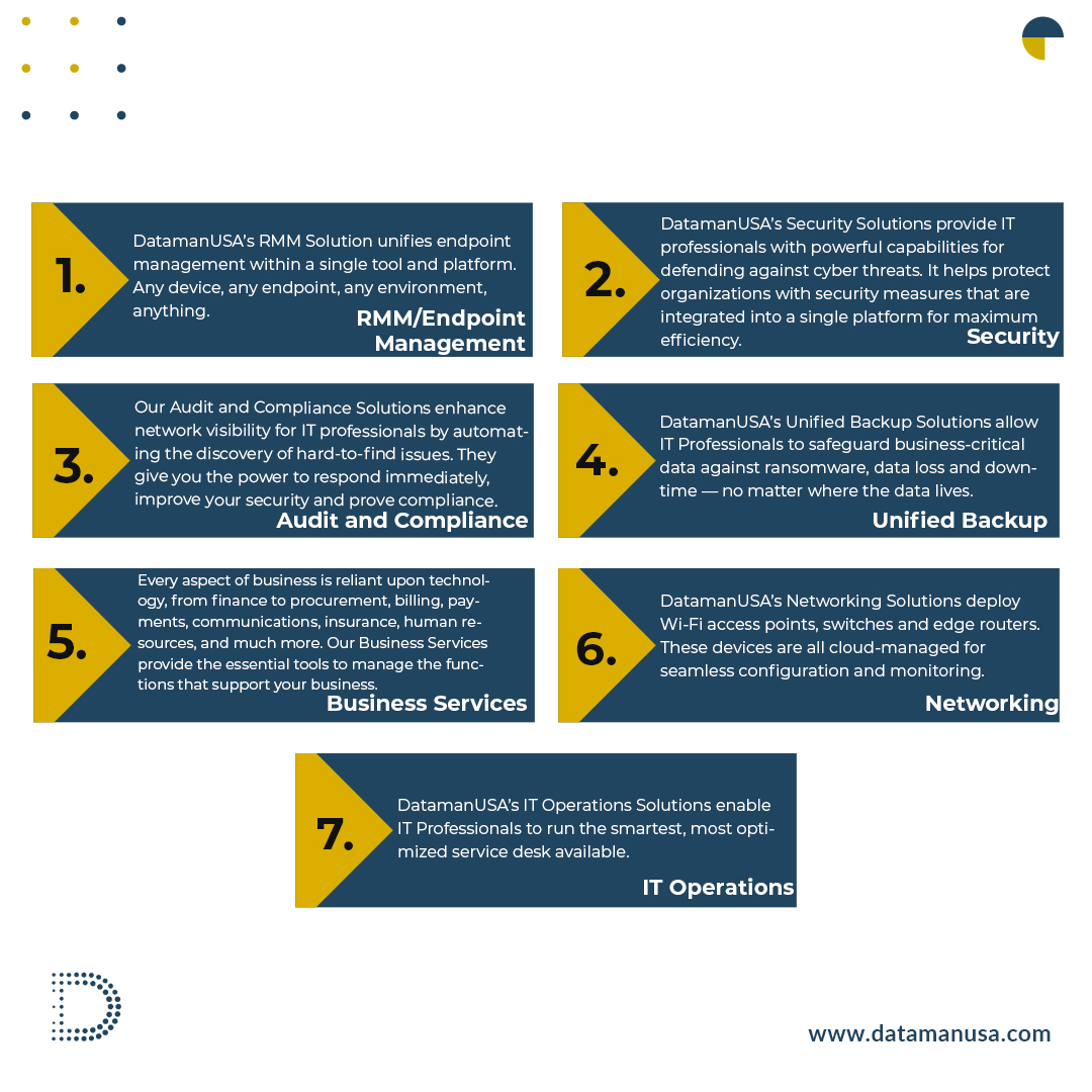 DatamanUSA’s RMM Solution unifies endpoint management within a single tool and platform. Any device, any endpoint, any environment, anything.
