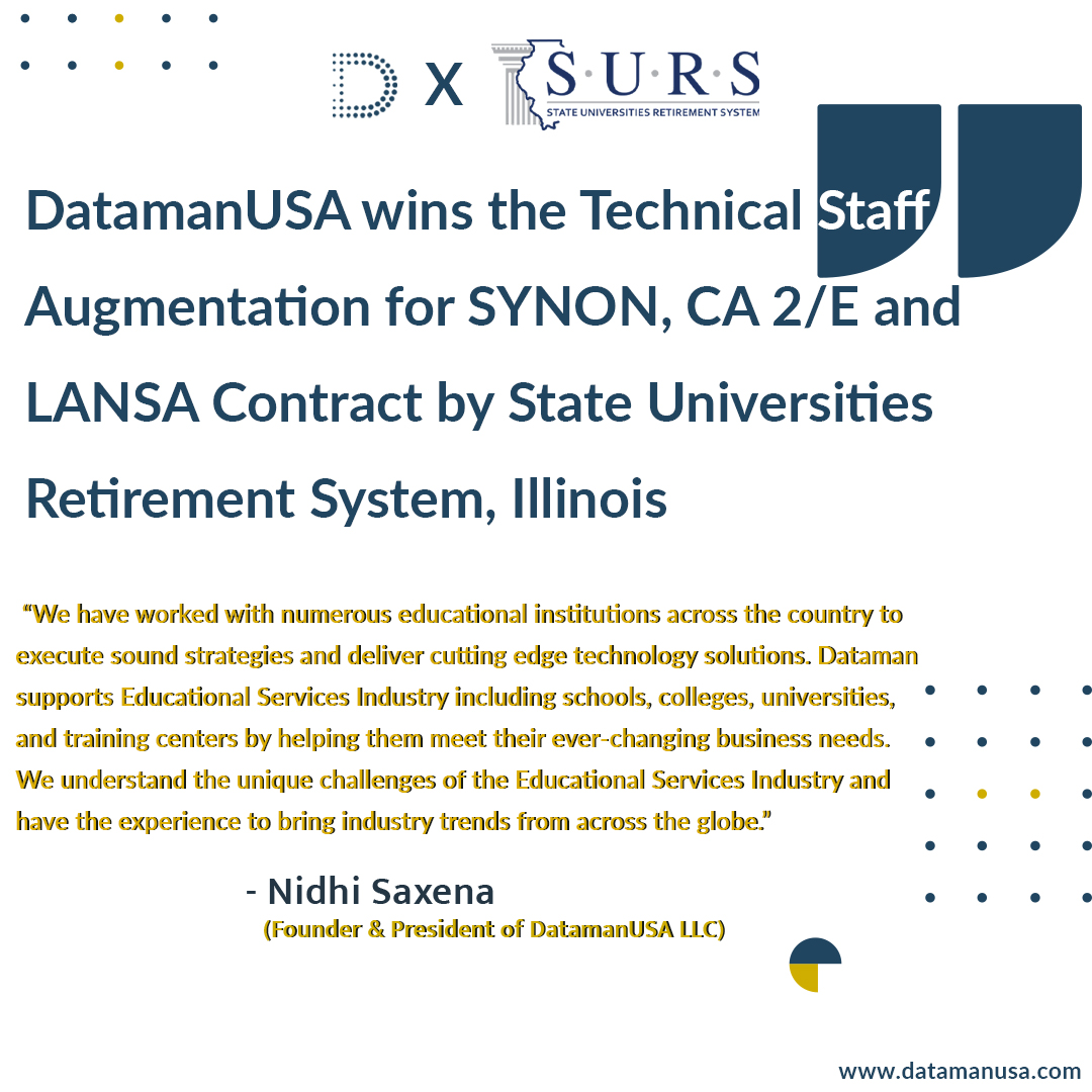 DatamanUSA wins Technical Staff Augmentation for SYNON, CA 2/E & LANSA Contract by State Universities Retirement System