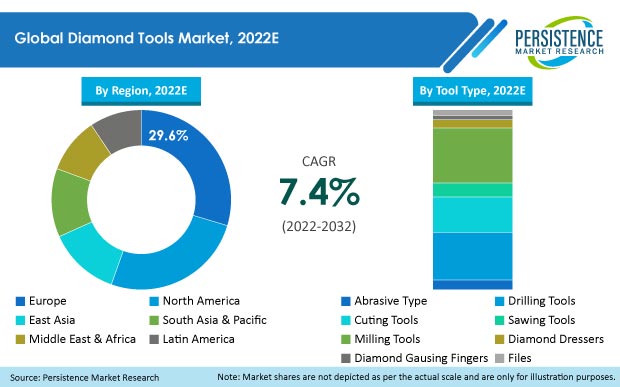 Europe and North America are together expected to account for more than half of the global share in the diamond tools market.