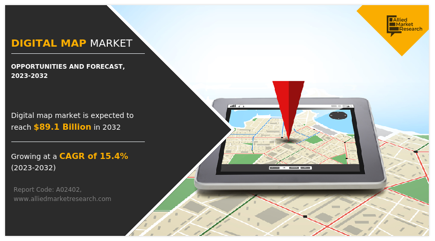 WILMINGTON, NEW CASTLE, DE, UNITED STATES, December 6, 2024 /EINPresswire.com/ — The global 𝐃𝐢𝐠𝐢𝐭𝐚𝐥 𝐌𝐚𝐩 𝐌𝐚𝐫𝐤𝐞𝐭 was valued at $21.8 billion in 2022, and is projected to reach $89.1 billion by 2032, growing at a CAGR of 15.4% from 2023 to 2032. Digital mapping is widely used across all countries. Digital mapping solutions have emerged as an effective tool for information services, disaster, and natural resource management as well as for entertainment projects. Moreover, the technological advancements in solution components, and their increased adoption in navigation solutions drive the growth of the market. However, privacy concerns and data security issues are becoming more significant as mapping applications collect and store vast amounts of user data. In addition, regulatory frameworks related to data collection, use, and sharing may pose challenges for companies operating in this space. Despite the restraints, the digital mapping industry presents significant opportunities. The emergence of autonomous vehicles and smart cities creates a demand for highly detailed and accurate mapping data. Companies that can provide precise mapping solutions, including 3D and indoor mapping, stand to benefit from these opportunities. Furthermore, the expansion of e-commerce and the need for efficient last-mile delivery solutions provide avenues for digital mapping to optimize logistics and enhance supply chain management.