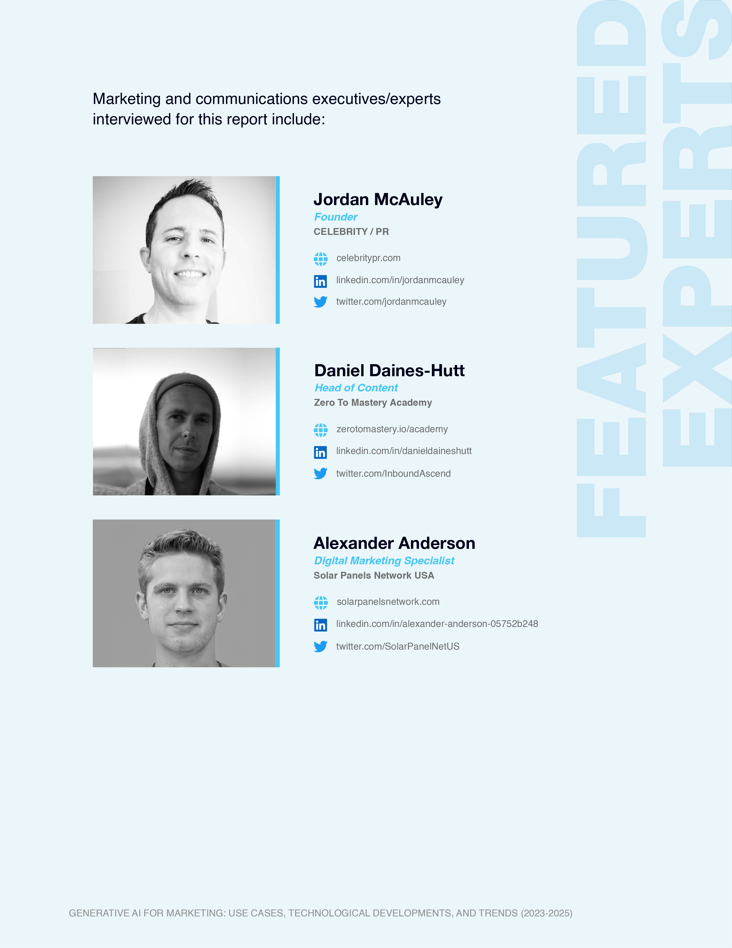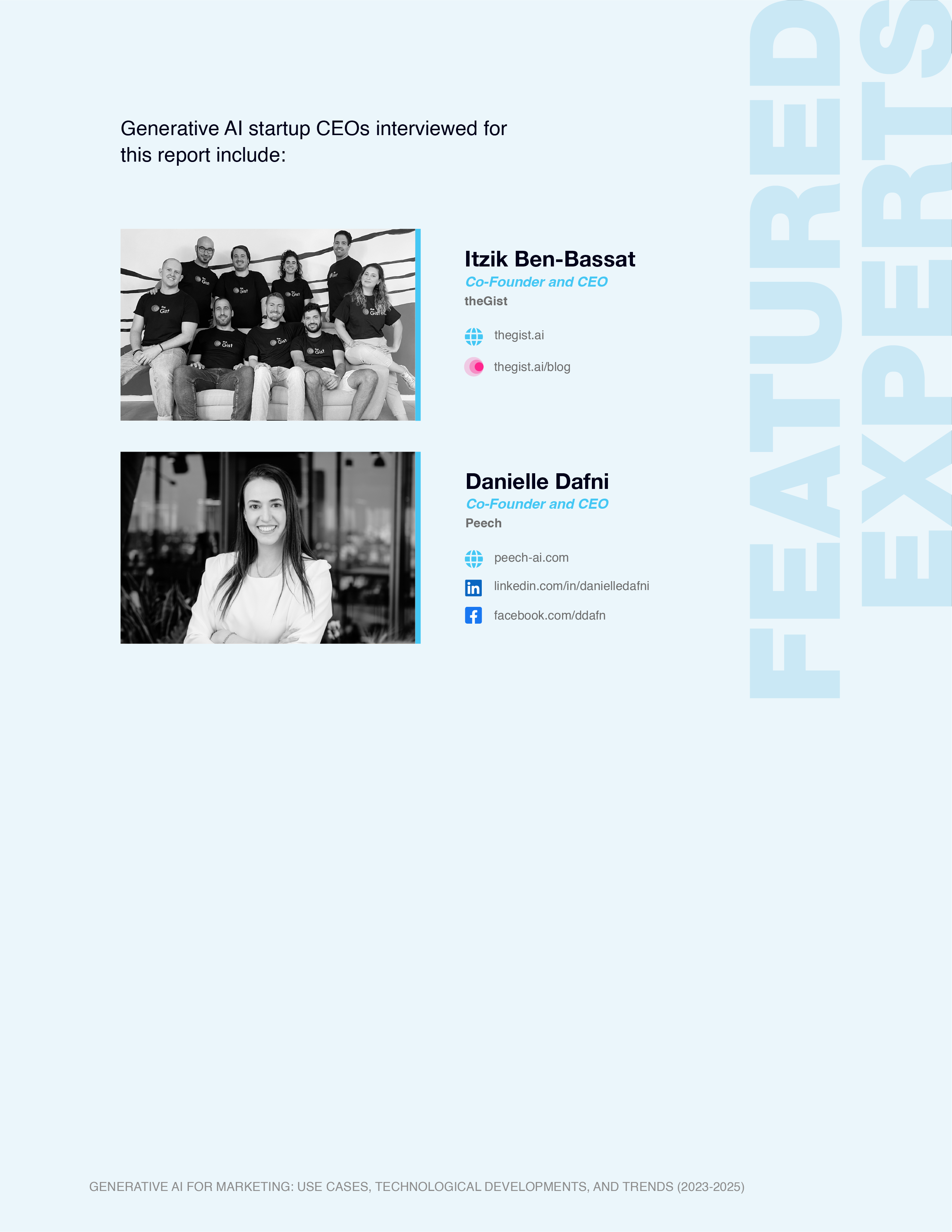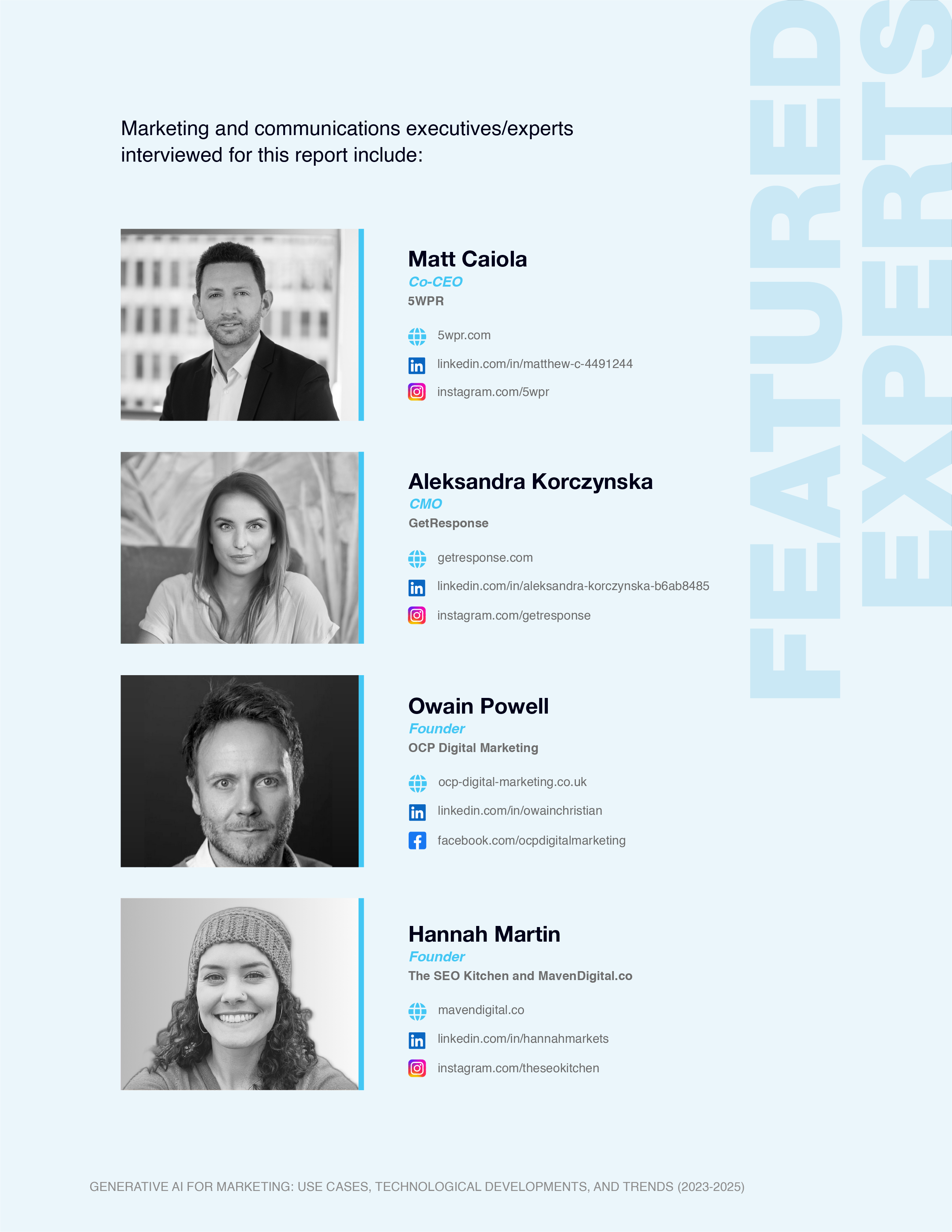 For a tech industry largely propelled by overzealousness, come what may, in the beginning of 2023, generative AI emerged as a rare topic that could instill a sense of pause or humility, exacerbate global economic dread, or inspire new investments and an overhaul of business strategy. With ChatGPT capturing the zeitgeist, many investors and innovators are already anticipating the hypothetical AI to AGI transition. This report’s organized feedback from marketing and communications leaders can help to guide next steps and highlight the segments of highest value.