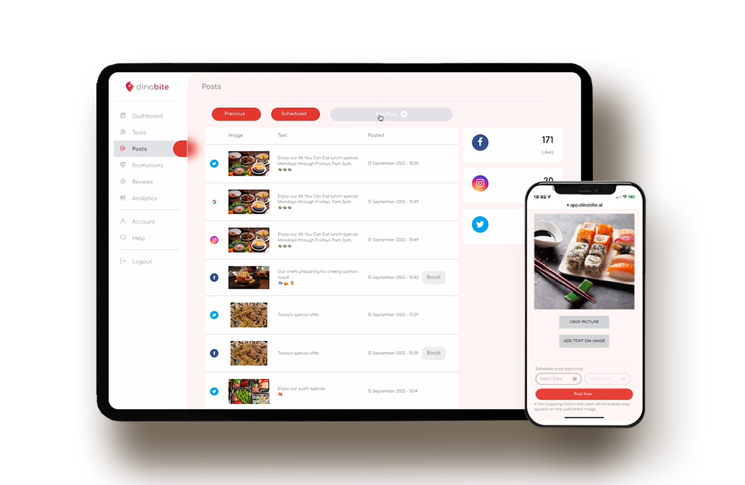 With https://dinabite.ai, the hospitality staff can manage marketing and social media with minimal effort and time, while getting great results.