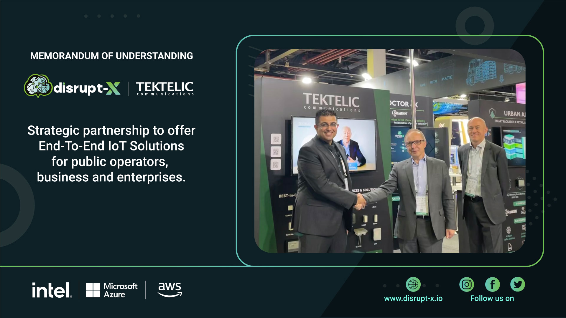Mr. Roman, President of TEKTELIC said, “TEKTELIC believes the mass IoT adoption will only happen when the suppliers start offering its customers fully integrated IoT solutions that are ready to be deployed at scale. Partnering with Disrupt-X allows TEKTELIC to offer its customers End-to-end IoT solutions that incorporated TEKTELIC Devices, Sensors and Applications”.