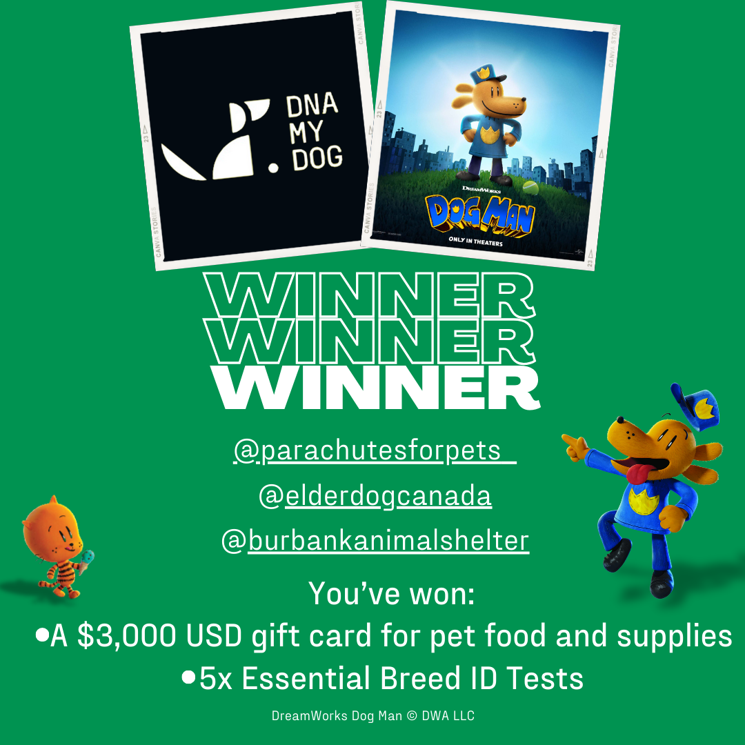 TORONTO, ON, CANADA, February 16, 2025 /EINPresswire.com/ — Leading canine genetics testing company, DNA My Dog, and DreamWorks Animation have announced the winners of their Dog Man Rescue Giveaway, awarding three animal rescues a $3,000 USD gift card for pet food and supplies, along with five DNA My Dog breed identification tests for adoptable dogs.