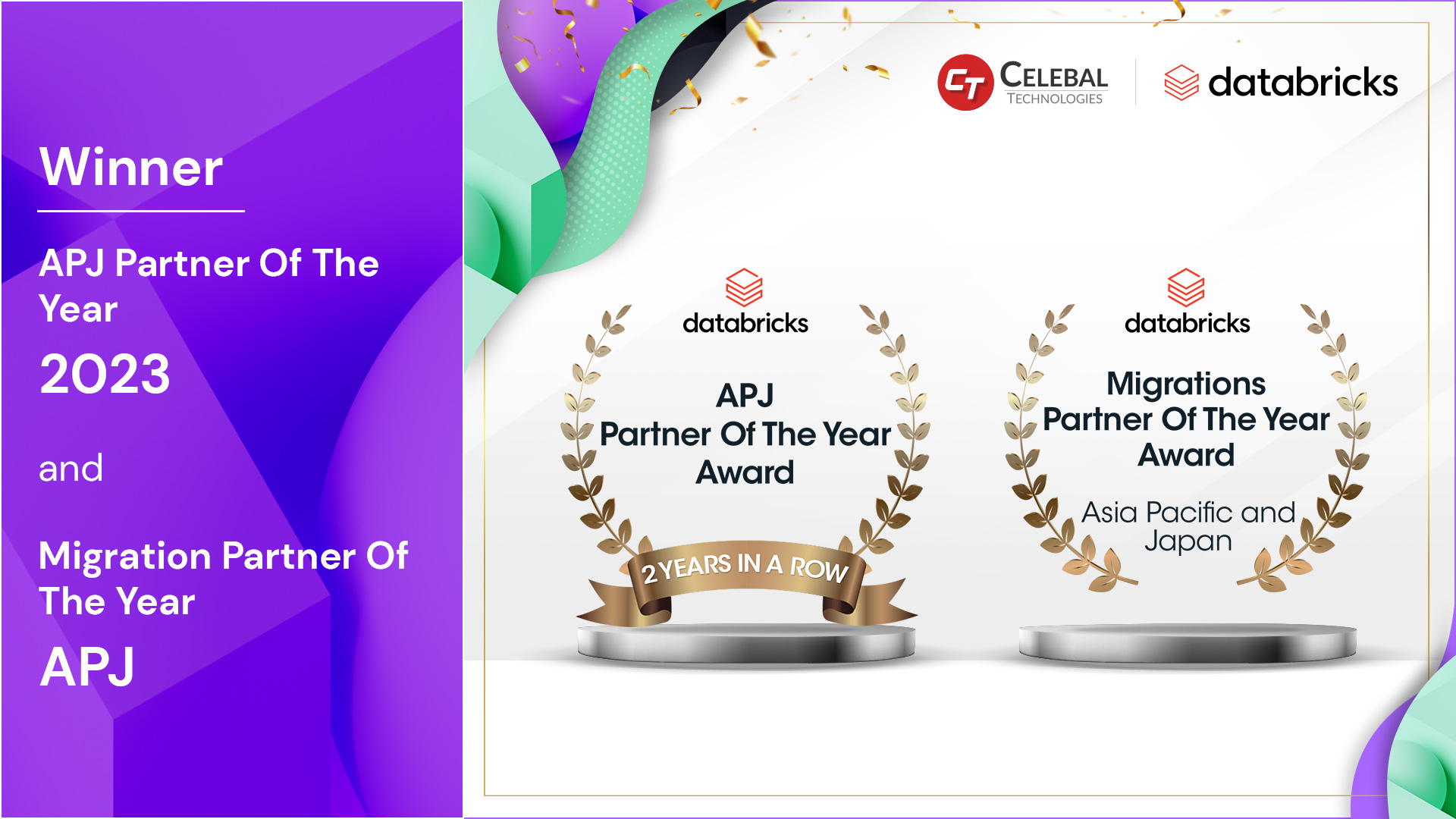 Celebal Technologies has emerged victorious with two Databricks awards: APJ Partner of the Year Award and the Migrations Partner of the Year – APJ Award.