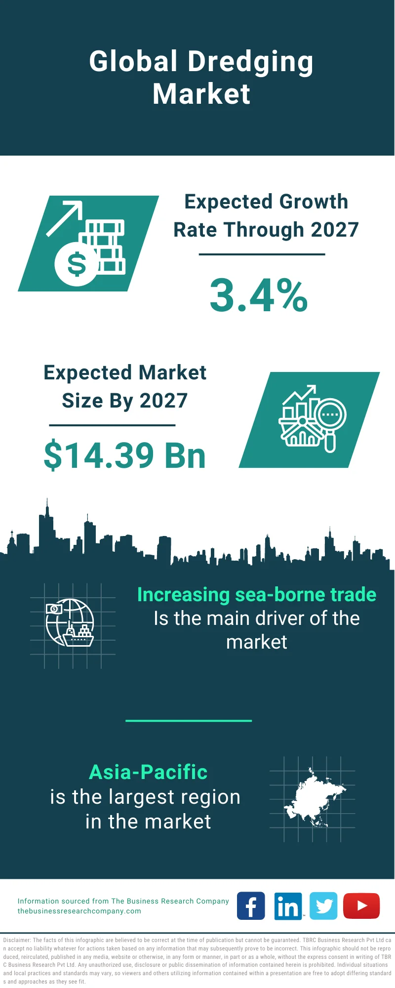The dredging market is projected to reach $14.39 billion in 2027 at a 3.4% CAGR, per TBRC’s Dredging Global Market Report 2023.