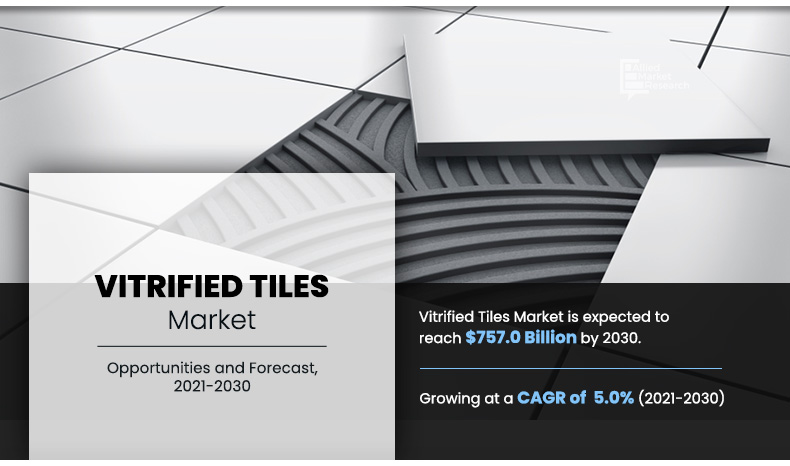 PORTLAND, OR, UNITES STATES, February 27, 2023 /EINPresswire.com/ — The global vitrified tiles market size was valued at $448.6 billion in 2020, and is projected to reach $757.0 billion by 2030, registering a CAGR of 5.0% from 2021 to 2030. The global vitrified tiles market has been gradually increasing, and this trend is expected to continue in the near future. The fast expansion of the construction sector, which includes strong demand for luxury flooring and wall tiles as one of the main growth factors, is driving the vitrified tiles market. Vitrified tiles offer attractive flooring, easy to clean, low maintenance, economical, and are scratch and stain resistant, moisture resistant, and dust free.