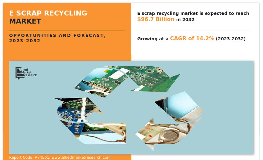 E Scrap Recycling Market Size is expected to Reach $96.7 Billion by 2032 | Registering a CAGR of 14.2% from 2023- 2032