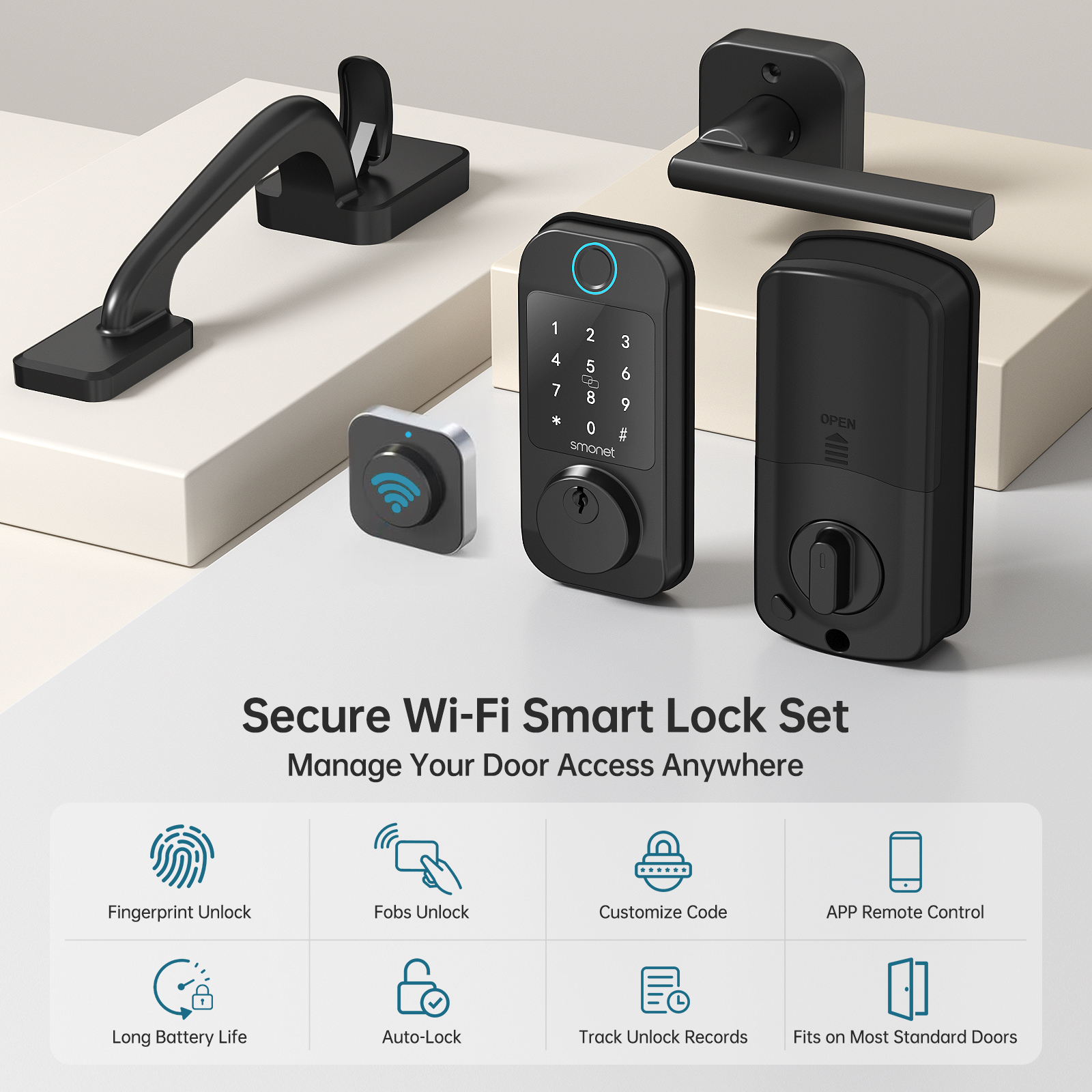 The Smonet M6 fingerprint door lock is designed for those who value both security and convenience. This smart lock offers multiple unlocking methods, including fingerprint recognition, app control, and even Alexa voice commands. With the ability to store up to 500 fingerprints, it’s ideal for families, rental properties, or Airbnb hosts who need to manage access for multiple users.