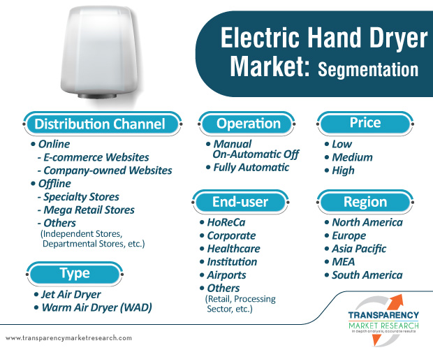 Manufacturers are boosting sales by offering motor and machine warranty on products. However, there is a need for awareness about the proper usage of automatic jet hand dryers, since these sensor-based machines are sometimes associated with delayed detection of the individual’s hands. Hence, manufacturers are educating users through FAQs (Frequently Asked Questions) about the product to shake the hands well before using the hand dryer and putting the hands together in & out to ensure timely detection.