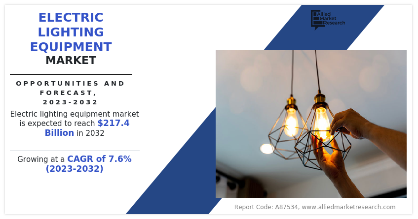 PORTLAND, OR, UNITED STATES, September 14, 2023/EINPresswire.com/ — Allied Market Research published a report on Electric Lighting Equipment Market by Type, Sales Channel, Application: Global Opportunity Analysis and Industry Forecast, 2023-2032. The electric lighting equipment market was valued at $105.3 billion in 2022, and is estimated to reach $217.4 billion by 2032, growing at a CAGR of 7.6% from 2023 to 2032.