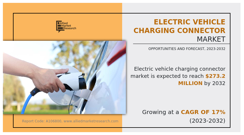 The electric vehicle charging connector market size was valued at $59.3 million in 2022, and is estimated to reach $273.2 million by 2032, growing at a CAGR of 17% from 2023 to 2032.