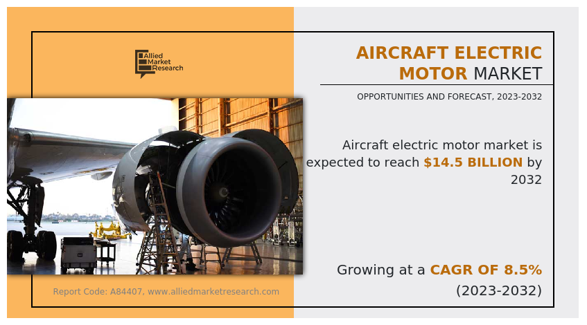 PORTLAND, OREGON, UNITED STATES, July 4, 2023/EINPresswire.com/ — The aircraft electric motor market size was valued at $6.5 billion in 2022, and is estimated to reach $14.5 billion by 2032, growing at a CAGR of 8.5% from 2023 to 2032.
