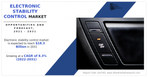 WILMINGTON, NEW CASTLE, DE, UNITED STATES, January 27, 2025 /EINPresswire.com/ — According to a new report published by Allied Market Research, The electronic stability control market size was valued at $8.4 billion in 2021, and is estimated to reach $18.3 billion by 2031, growing at a CAGR of 8.3% from 2022 to 2031.