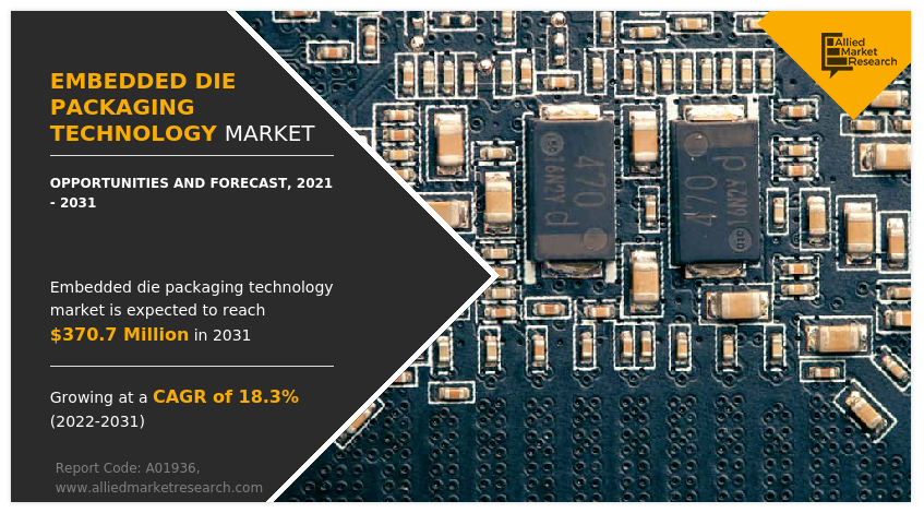 PORTLAND, OREGON, UNITED STATES, September 29, 2023 /EINPresswire.com/ — Allied Market Research published a report on the Embedded Die Packaging Technology Market by Platform (Embedded Die in IC Package Substrate, Embedded Die in Rigid Board, Embedded Die in Flexible Board), by Industry Vertical (Consumer Electronics, IT and Telecommunication, Automotive, Healthcare, Others): Global Opportunity Analysis and Industry Forecast, 2021-2031.