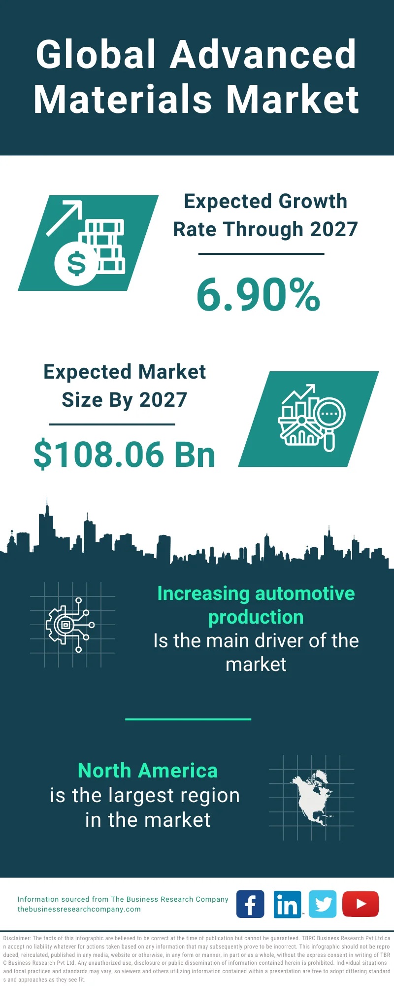 The size of advanced materials market is expected to reach $108.06 billion in 2027 at a CAGR of 6.90%”