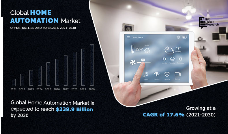 PORTLAND, OR, UNITES STATES, February 22, 2023 /EINPresswire.com/ — The home automation market size was valued at $46.6 billion in 2020, and is expected to reach $239.9 billion by 2030, registering a CAGR of 17.6% from 2021 to 2030. Home automation systems have witnessed an unprecedented demand in the recent years, due to increased concerns about safety & security, especially in urban areas. Moreover, factors such as improved lifestyle, increase in disposable income of people, and surge in awareness about smart automated systems have boosted the adoption of home automation systems. However, the home automation market is in its developing stage for cities and rural regions, and, is expected to witness significant growth in the future. Metropolitan cities are anticipated to provide lucrative opportunities for the market players, owing to improvement in access to wireless technologies in these cities.