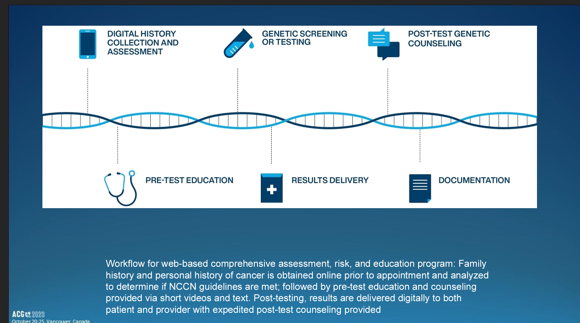 VANCOUVER, BRITISH COLUMBIA, CANADA, October 22, 2023 /EINPresswire.com/ — Implementation of a digital cancer risk assessment tool and genetic testing program in gastroenterology practices throughout the US identified inherited cancer susceptibility syndromes in 15.6% of patients tested, according to findings that will be presented at the American College of Gastroenterology’s 2023 Annual Scientific Meeting, in Vancouver, British Columbia. Daniel J. Pambianco, MD, FACG, GastroHealth of Charlottesville, VA, will present the findings on Tuesday, October 24, 2023, at 2:35 PM – 2:45 PM PT in Ballroom B at the Vancouver Convention Centre. The presentation will also be livestreamed.
