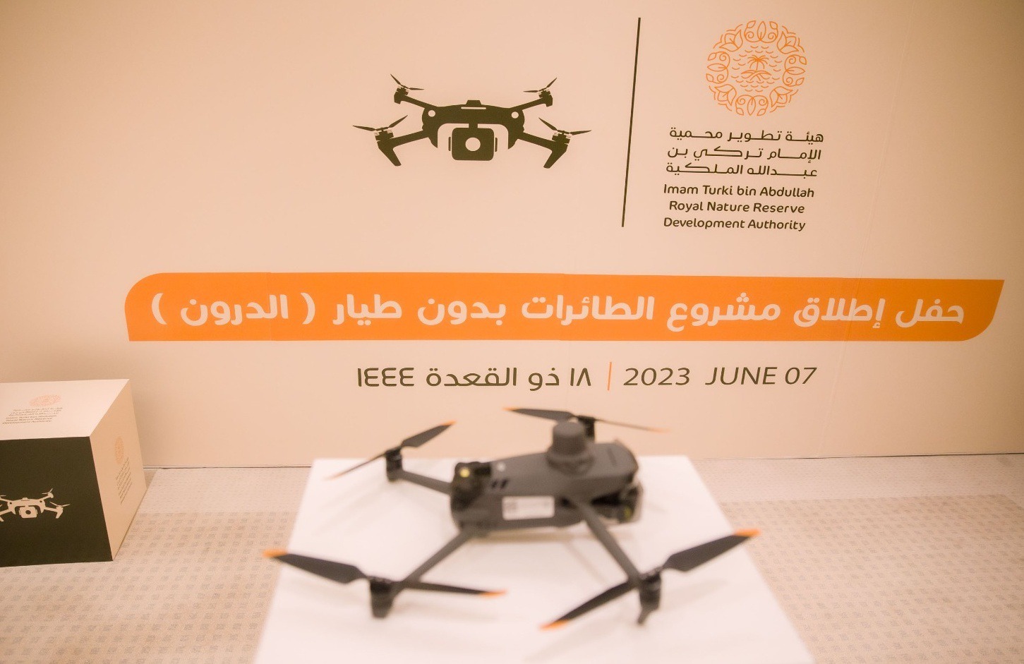 The CEO of The Development Authority of The Imam Turki Bin Abdullah Royal Reserve, Eng. Mohammed Al-Shaalan announced the launch of the drone project at a ceremony held by the authority in Riyadh and witnessed a significant media presence.