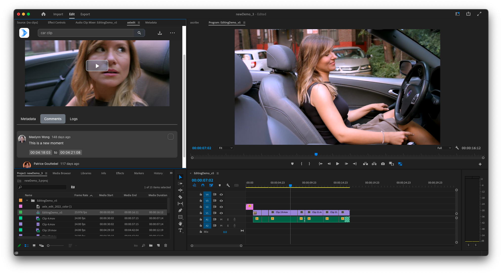 Sam Bogoch, CEO of axle ai, said “This panel represents a new level of integration between MAMs and desktop editing applications. It represents the culmination of our collaboration with Adobe over the years. Previously, the best MAM users could hope for was to export clips to Premiere Pro, but with axledit 1.2 they can now collaboratively create full sequences in the MAM, and bring them as well as the associated clips into Premiere Pro.”