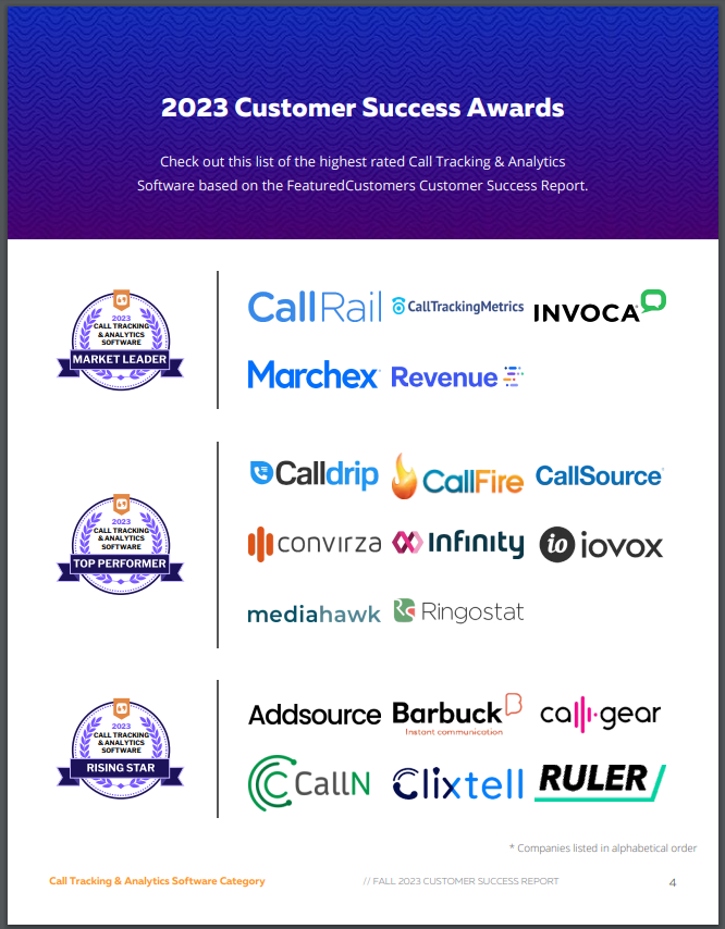 FeaturedCustomers releases the Fall 2023 Call Tracking & Analytics Software Customer Success Report.