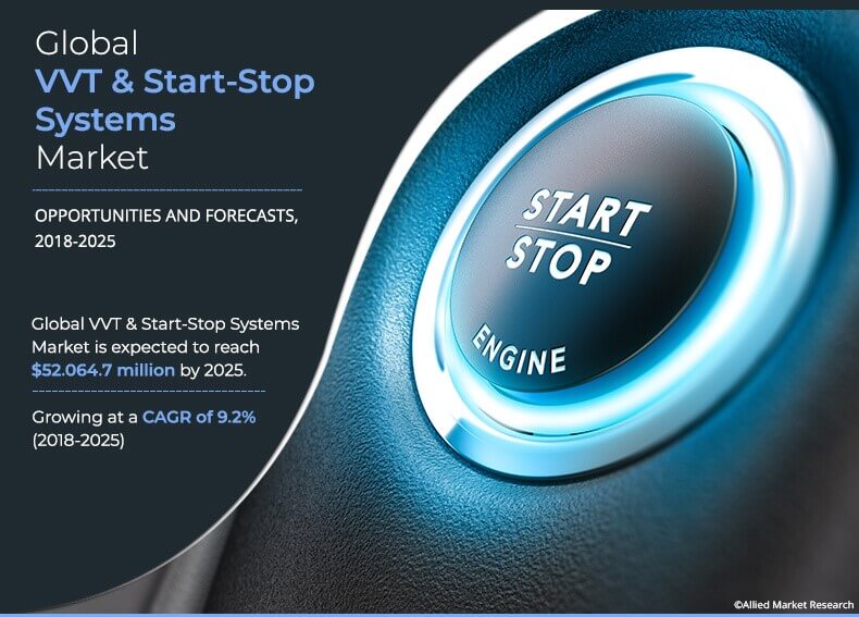 Allied Market Research recently published a report, titled, “VVT and Start-Stop System Market by Camshaft Type (DOHC and SOHC), Starter Type (Belt-Driven Alternator Starter, Enhanced Starter, Direct Starter, and Integrated Starter Generator), and Fuel Type (Gasoline, Diesel, and Electric): Global Opportunity Analysis and Industry Forecast, 2018 – 2025”. According to the report, the global VVT and start-stop industry size was valued at $25.33 billion in 2017 and is anticipated to reach $52.06 billion by 2025, growing at a CAGR of 9.2% during the forecast period.