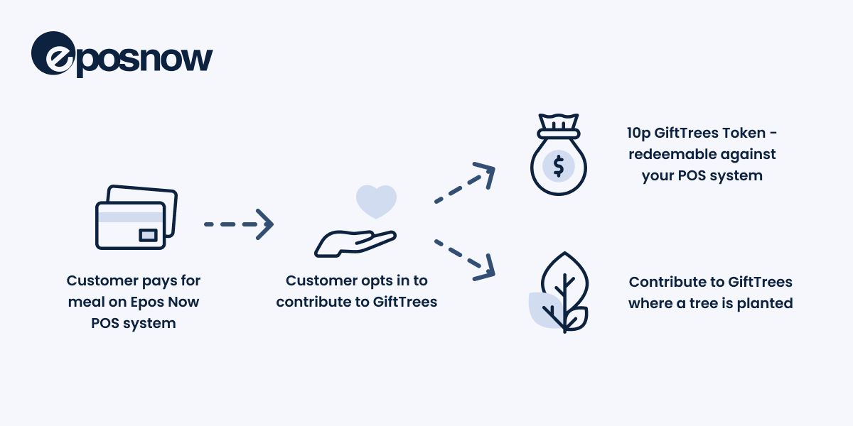 Using their Epos Now terminals, merchants will automatically receive 10p for every GiftTree contribution made by their customers. These tokens can be utilised to offset their Epos Now monthly costs while making a tangible difference in the fight against climate change and poverty.