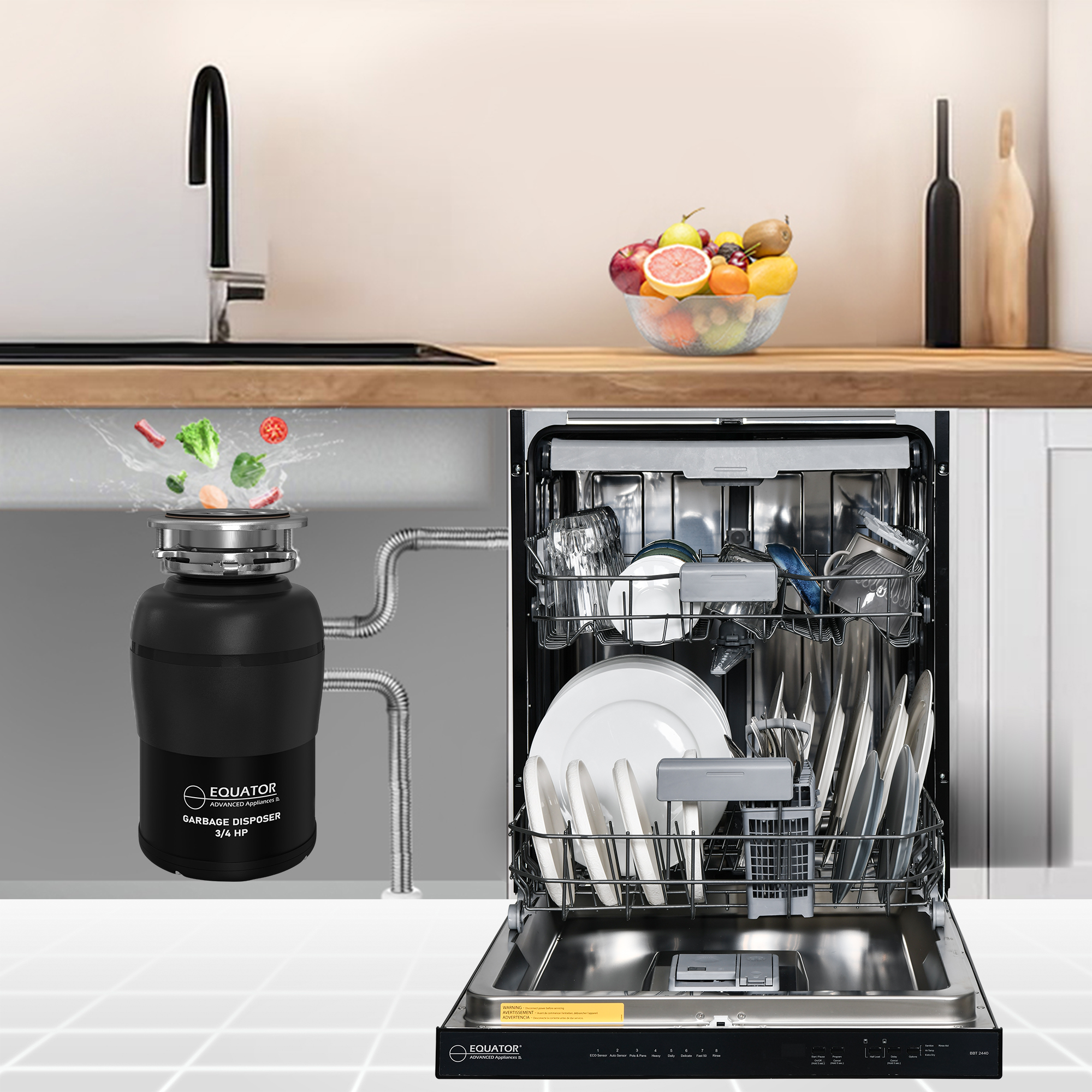 Together, the Equator 2440 Dishwasher and GD 075 Garbage Disposer provide a comprehensive kitchen solution, allowing users to clean and manage waste quickly and efficiently while maintaining a stylish and quiet environment.
