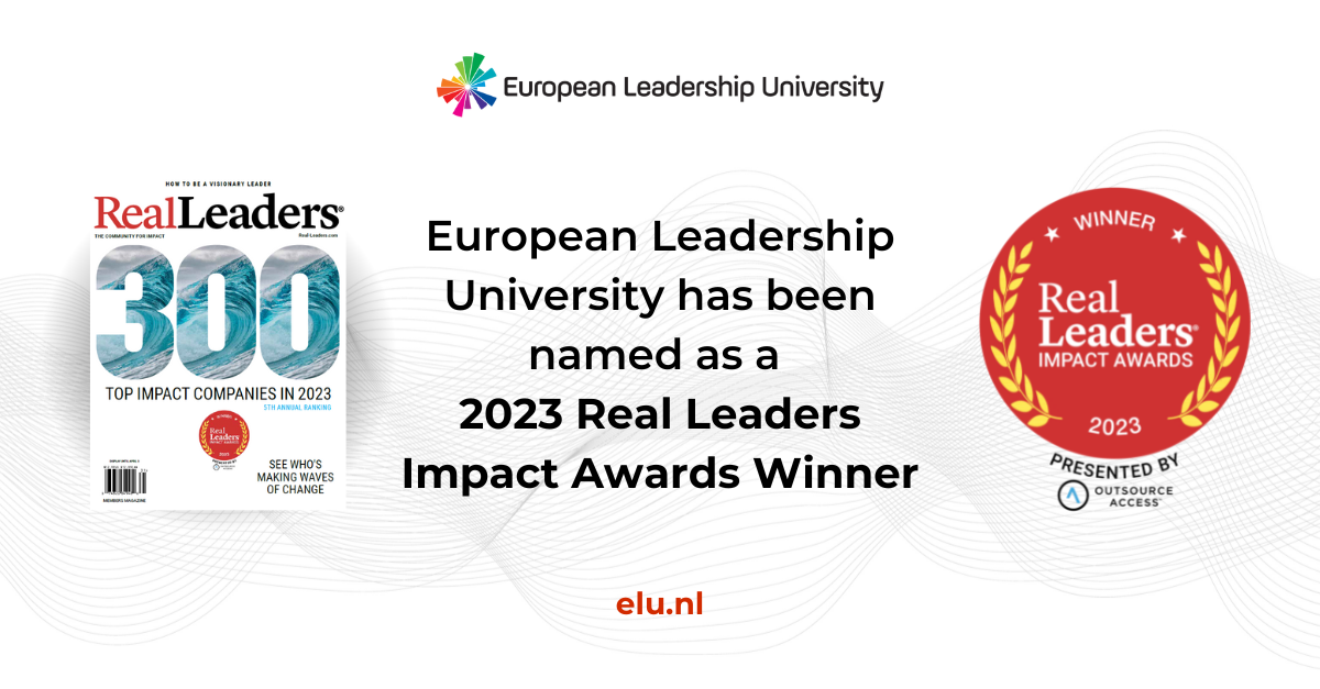 AMSTERDAM, NETHERLANDS, January 18, 2023 /EINPresswire.com/ — European Leadership University is proud to announce that the organization has been named a winner in the 2023 Real Leaders Impact Awards. These awards are held annually and recognize the companies with the most impact in the world that lead the way in bringing about change for good.