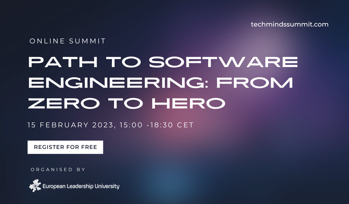 AMSTERDAM, NETHERLANDS, January 26, 2023 /EINPresswire.com/ — European Leadership University has announced a free-of-charge Software Engineering Online Summit titled “Path To Software Engineering: From Zero To Hero” to be held on 15 February 2015 at 15:00 CET, featuring experienced software engineers, as well as tech professionals and renowned companies.
