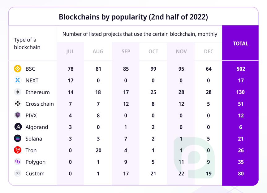 Blockchains by popularity (2nd half of 2022)