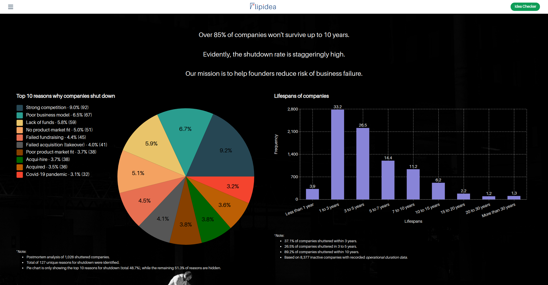 – Flipidea’s postmortem data also showed that most inexperienced founders lack the know-how and affordable tools to effectively validate the market and conduct competitors analysis.