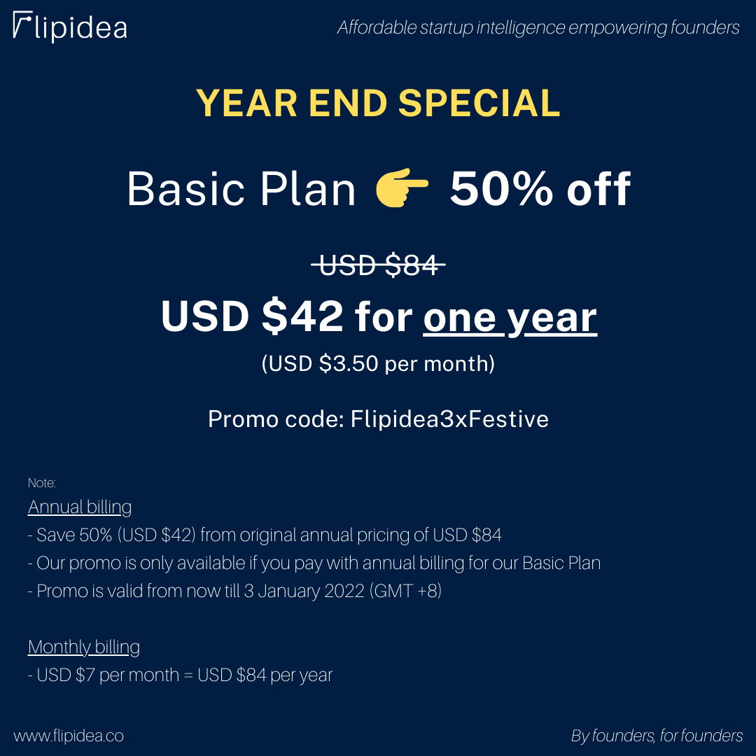 Year end special: The company is offering its Basic Plan at 50% off, only available for annual billing, from now till 3 January 2022 (GMT +8). Promo code: Flipidea3xFestive.