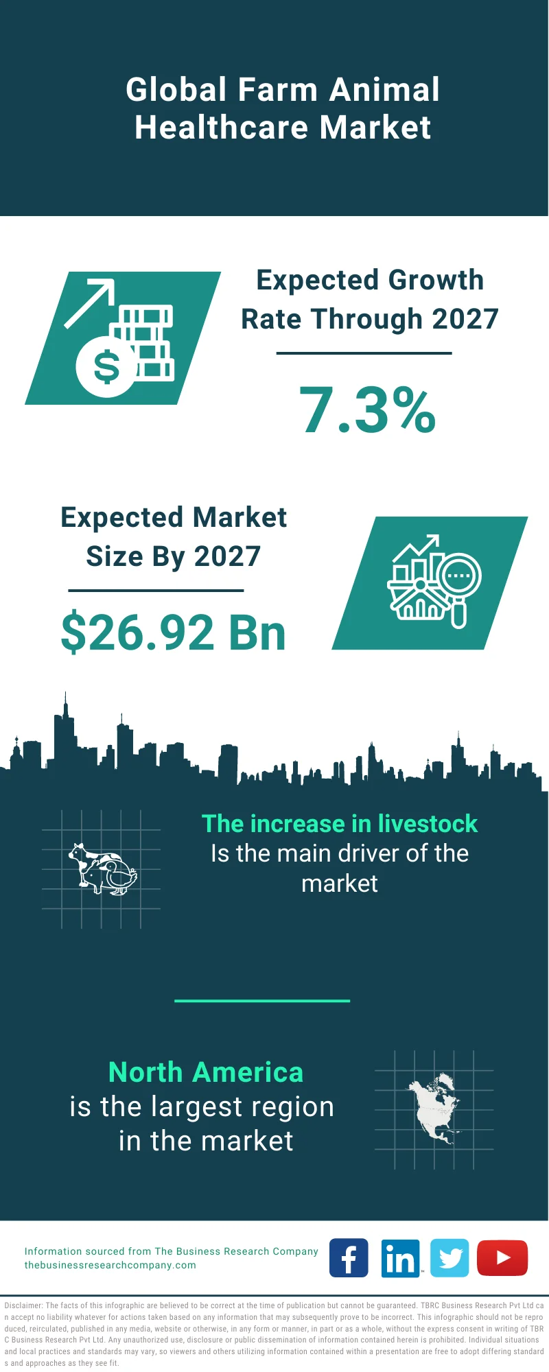 The farm animal healthcare market is expected to reach $26.92 billion in 2027, growing at a CAGR of 7.3%.