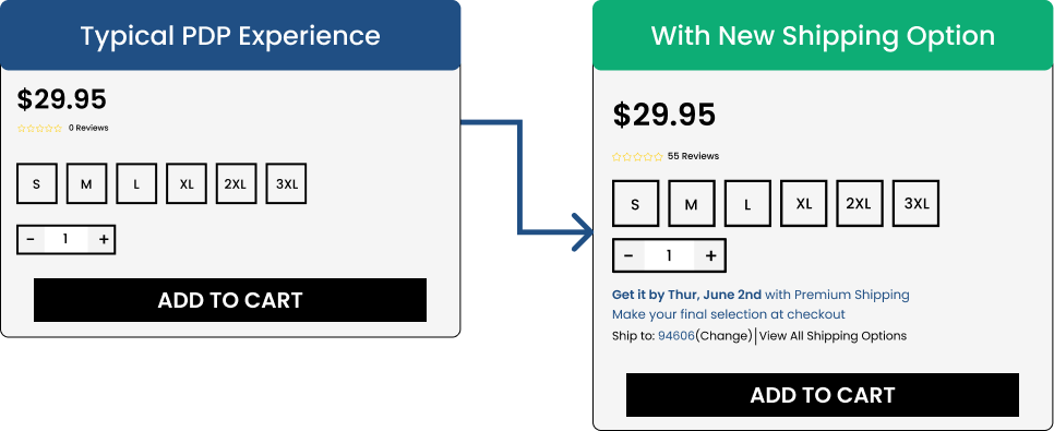 – Average 17% increase in conversion by displaying EDD in multiple locations