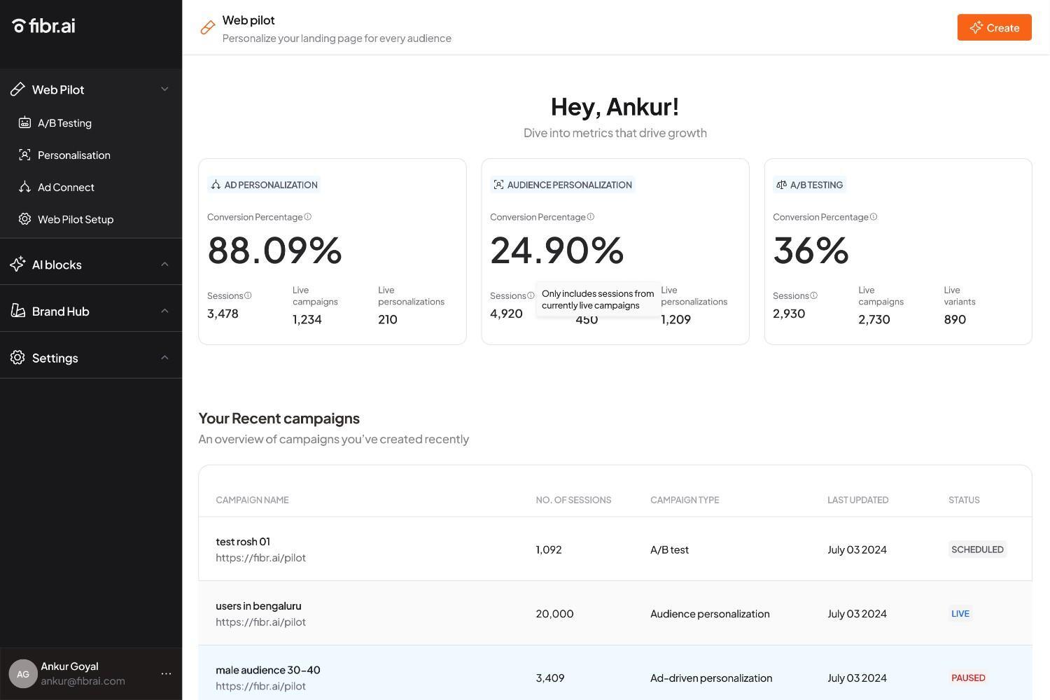 2. Real-Time Content Adaptation: Fibr’s platform dynamically adjusts landing page content based on real-time user behaviour, leading to higher conversion rates.