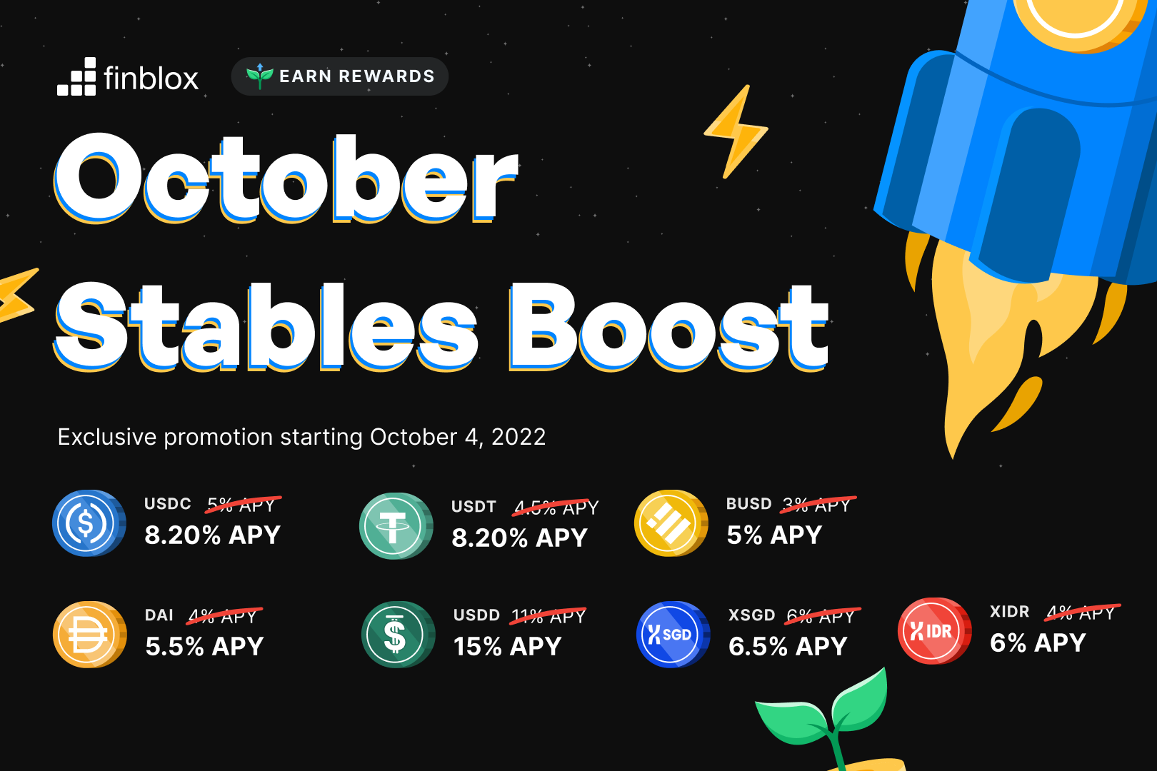 Since the start of October, Finblox has been offering exceptional rates on most of their stablecoins as follows: