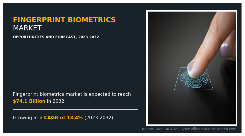Fingerprint Biometrics Market size is Expected to Reach $74.1 Billion by 2032 | Registering a CAGR of 13.4%