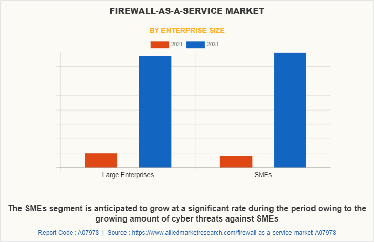 The outbreak of COVID-19 is anticipated to have a positive impact on the growth of firewall as a service market. This is attributed to the fact that with the emergence of COVID-19, the use of network security solutions will enable enterprises to address critical security issues and facilitate secured information access while remote working. In addition, because of the increase in internet traffic, the danger of cyber-attacks has grown significantly in numerous enterprises, necessitating the implementation of network security solutions such as firewalls, intrusion detection, and intrusion prevention systems.