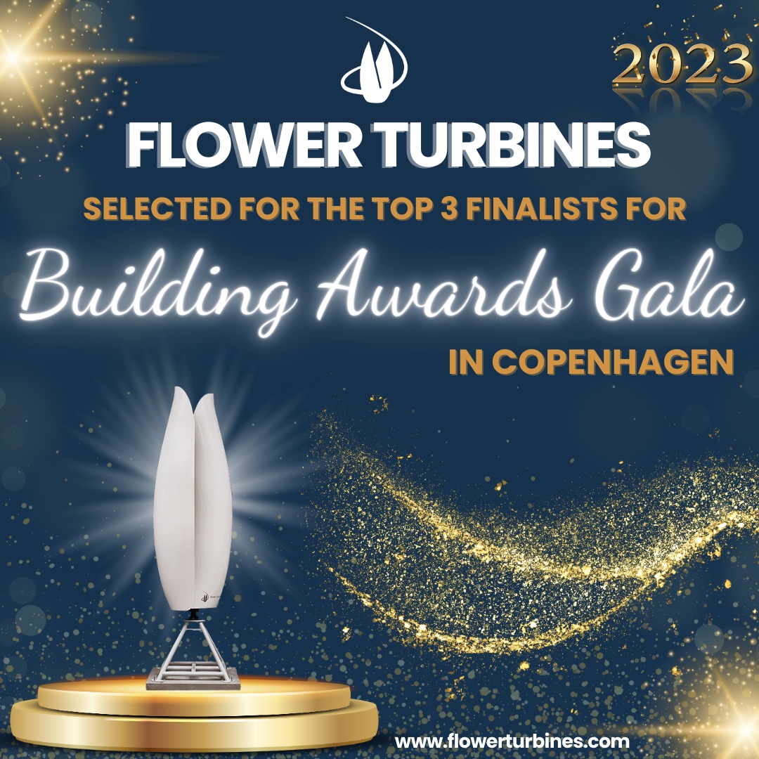 Flower Turbines is part of a project that has been selected for the top 3 finalists in the climate section of the 2023 Building Awards gala in Copenhagen.