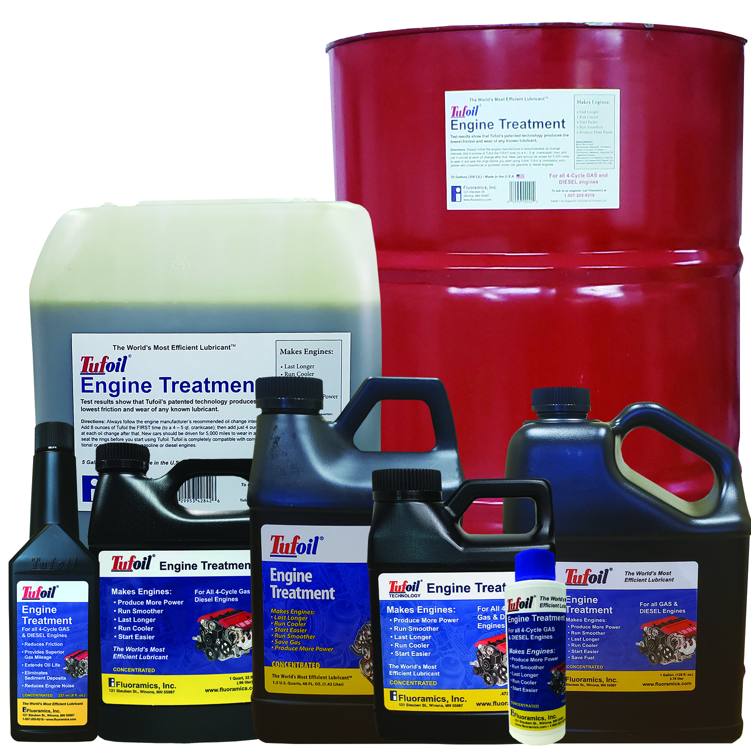 Tufoil Engine Treatment is an engine oil additive that extends engine life, reduces maintenance, and allows vehicles to run more efficiently. Advanced testing of Tufoil shows faster cranking speeds, reduced friction, increased horsepower and acceleration, and improved cold weather starting.