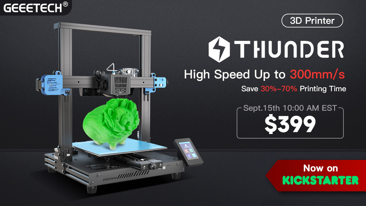 SHENZHEN, GUANGDONG, CHINA, September 15, 2022 /EINPresswire.com/ — 3D printing has been time-consuming and challenging. But in 2022, with the advent of high speed 3d printers, 3D printing enthusiasts is getting a faster and smarter printing experience. From September 15th, Geeetech’s new 3D printer THUNDER with up to 300mm/s printing speed is ready for pre-order on Kickstarter. Super early birds will get a bottom price of $399.