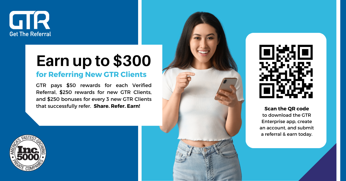 To learn more about GTR’s Referral Program, visit www.GetTheReferral.com/ReferGTR
