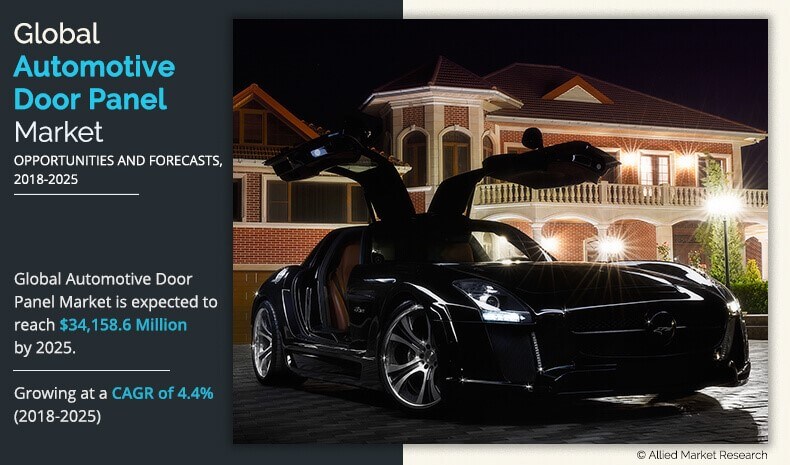 OREGAON, PORTLAND, UNITED STATES , October 18, 2023 /EINPresswire.com/ — Allied Market Research published a report, titled, “Automotive Door Panel Market by Mode of Operation (Front-hinged Door, Rear-hinged Door, Scissor Door, Gullwing Door, and Sliding door), Vehicle Type (Passenger Car, Light Commercial Vehicle (LCV), and Heavy Commercial Vehicle (HCV)), and Distribution Channel (OEM and Aftermarket): Global Opportunity Analysis and Industry Forecast, 2018–2025.” The report provides insights on top winning strategies, key market player positioning, changing market dynamics, key segments, and competitive scenario. The research states that the global automotive door panel market garnered $24.11 billion in 2017 and is estimated to reach $34.15 billion by 2025, growing at a CAGR of 4.4% from 2018 to 2025.